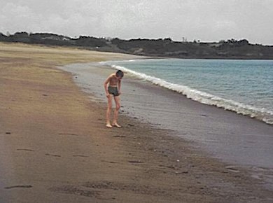 Das Wetter hat sich verschlechtert. Wir fahren nach dem Frühstück nach Cancale, bekannt für seine Austernzucht. Unterwegs halten wir an einem Strand an, um die in St.Brieuc vereinbarte Wette einzulösen. Die am schlechtesten abgeschnittene Mannschaft, d.h. Sabrina, Sebastian und Uli gehen im Meer baden. Sabrina findet soviel Gefallen daran, dass sie gar nicht mehr aus dem Wasser kommen will. Endlich verlässt sie das Wasser, es hat angefangen zu regnen. Unterwegs steigen wir zu einem kleinen Rundgang zur Pointe du Grouin aus. Von dort sehen wir in der Ferne den Mont St. Michel. In Cancale ist gerade Ebbe und wir sehen den mit Traktoren fahrenden Austernfischern bei der Arbeit zu. Das Wetter verschlechtert sich sehr und wir kehren zum Campingplatz zurück. Malte hat sich vorgenommen, für uns alle zu kochen. Es schmeckt vorzüglich. Abschließend bringen wir die Chalets in Ordnung und packen unsere Sachen.