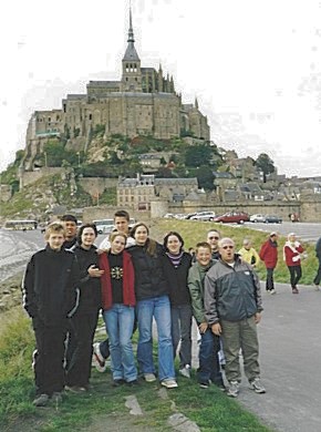 Nach dem Mittagessen fahren wir zum Klosterberg „Mont St. Michel“. Schon von Weitem sieht man ihn und beim Näher kommen wird er immer gewaltiger. Der Anblick ist immer wieder aufs Neue faszinierend. Über kleine enge Gassen und viele Stufen erreichen wir den Eingang des Klosters. Mit einer deutschen Beschreibung des Klosters machen wir uns auf den Rundgang. Ergänzend dazu geben kleine Schilder an den Wänden uns weitere Erläuterungen. In der Abteikirche liegt ein Buch aus, in dem sich unsere Jugendlichen eintragen. Mit einiger Mühe gelingt es, ein Foto von dem Eintrag zu machen, da das Fotografieren nicht erlaubt ist und sich immer wieder neue Touristen eintragen. Nach ihrem Eindruck befragt erklären die Jugendlichen, das der Klosterberg schon toll aussieht, aber sie gedacht haben, dass das Kloster möbliert ist. Nach der Besichtigung treffen wir uns an den Autos, wo wir einen Imbiss einnehmen. Nach Anbruch der Dunkelheit wollen wir uns den St. Mont Michel noch in seiner „Festbeleuchtung“ betrachten. Spät am Abend kehren wir in unsere Unterkunft zurück. Um Mitternacht ist Zapfenstreich.