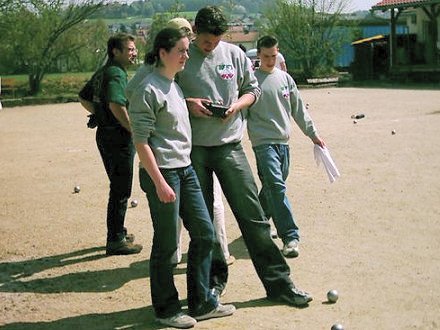 Am Anfang lief es beim Triplette der Juniors nicht besonders gut. Doch Uwe Beck als Trainer fand ein paar passende Worte und von da ab wurde das Spiel der Juniors, die ja auch Titelverteidiger waren, immer besser. Am besten spielten die Doublettes Juniors, die von 12 Spielen 11 Spiele für sich entscheiden konnten. Durch die Zeitbegrenzung, ¾ Stunde bei den Juniors und 1 Stunde bei den Cadets, kamen beim Petanquespiel merkwürdige Ergebnisse zustande (4:0, 6:5 etc.). Das Spiel bei den Cadets war von Anfang an gut und änderte sich auch bis zur letzten Paarung nicht, so das sie mit 4 Siegen Vorsprung gewannen. Bei den Juniors waren es 3 Siege Vorsprung.
