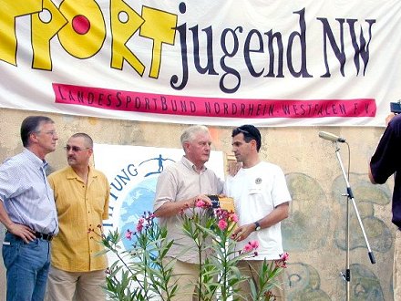 ![]() v.l.n.r.: Bürgermeister der Stadt Krefeld: Bernd Scheelen, Vizepräsident des BPV NRW: Berthold Perret, stellvertretender Vorsitzender des Stadtsportbundes: Bruno Zohren, Vorsitzende BC Krefeld: Jannis Papadaniel | |