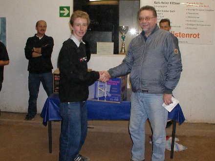 Uli Stratmann eine kleine, mit Süßigkeiten gefüllte Nikolaustüte. Das große Ereignis war jedoch die Prämierung der besten drei Teilnehmer aus den vier Turnieren, die in Coesfeld, Essen, Krefeld