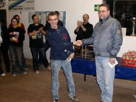 Uli Stratmann eine kleine, mit Süßigkeiten gefüllte Nikolaustüte. Das große Ereignis war jedoch die Prämierung der besten drei Teilnehmer aus den vier Turnieren, die in Coesfeld, Essen, Krefeld