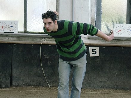 Thomas Göltl kurz vor dem Wurf, er spielte an der Position des Legers