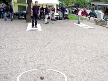Pünktlich um 10.00 Uhr begrüßte DPV-Jugendwart Uli Stratmann die Hauptakteure. Karl Heither und Daniel Sester vom NRW-Jugendausschuss leiteten das Turnier und gaben neben dem Tête-à-tête Wettbewerb in einem ersten Durchgang allen Kids die Möglichkeit, auch am Tireur-Wettbewerb teilzunehmen. Jede(r) schoss bei einer Entfernung von 6, 7, 8 und 9 Metern mit je 3 Kugeln pro Entfernung auf die Bilder 1 und 3 der offiziellen WM-Schießübungen. Es qualifizierten sich nach dieser ersten Runde die 4 besten Schießer, die anschließend die kompletten 5 WM-Schießübungen durchspielen mussten. Daniel Sester und NRW-Lehrwart Uwe Beck achteten auf die absolut korrekte Durchführung dieses Wettbewerbs. Die NRW-Bestmarke erreichte Florian Korsch im Halbfinale mit 29 Punkten.