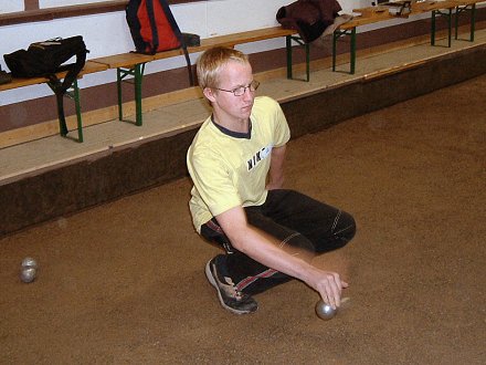 Das Finale zum Ende des Tages verpasste das bestplatzierte Mädchen Jessica Zensen aus Meckenheim nur knapp. Unter 3 Brüdern vom Ennert (Bonn) setzte sich Jan als ältester noch durch – aber seine Brüder sind ihm auf den Fersen. Jonas als jüngster Bruder (und Teilnehmer) mit 8 Jahren kündigte an, dass er in Zukunft öfter auf den Bouleplatz gehen werde. Vielleicht spricht die Bouleszene bald von den 3 berüchtigten Runo-Brüdern aus Bonn. Auch die 9jährige Katharina hatte ihren Spaß. Obwohl ihr kein Sieg gelang hatte sie doch alles im Griff. Ihr war die Freude am Spiel deutlich anzusehen.