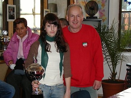 Rebekka Große von den Pétanquefreunden Goch, die Siegerin in der Gesamtwertung, übernahm von Beginn an die Führung und holte sich neben der Siegprämie in Höhe von 90,- Euro mit 77 Punkten unangefochten und absolut verdient den Wanderpokal zum Generationenturnier 2004. Klasse Leistung, Rebekka!