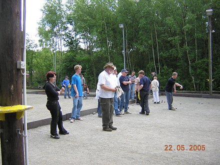 20 Doublettes beim 3. Spieltag des diesjährigen Generationenturniers auf einer der schönsten Bouleanlagen in ganz NRW – so die stolze Bilanz für den ausrichtenden Verein BC Krefeld am Sonntag, dem 22. Mai 2005. Jung und Alt fühlten sich so richtig wohl dank eines sympathischen Gastgebers, einer wie immer freundschaftlichen und herzlichen Atmosphäre, dank eines reichhaltigen Angebotes an leckeren Speisen und Getränken zu supergünstigen Tarifen und dank des optimalen Wetters. Hinzu kamen spannende Spiele über 5 Runden um wichtige Wertungspunkte nach dem Schweizer System. Und am Ende waren wieder einmal ALLE Gewinner, dann nämlich, wenn der Jüngere mit seinem älteren Partner unter dem Applaus der anderen an den Wichteltisch herantreten und ein Überraschungsgeschenk nehmen durfte.