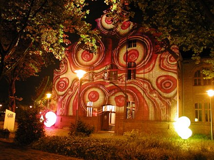 ![]() Die beleuchtete Vorderseite der Zeche Ahrenberg Fortsetzung | |