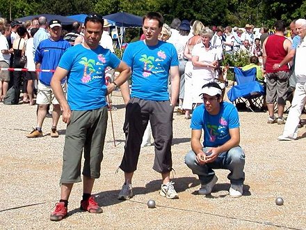 Ruth Seebach / Andreas Globig / Nicolaj Kirchhof (NRW) Deutscher Vizemeister Triplette sind Angelika Thelen / Thomas Thelen / Georgios Dimitriadis (NRW) Den 3. Platz teilen sich Mohamed-Kamel Bourouba / Malte Berger / Kim Rieger (NRW) Christian Hempel / Wolfram Krabiell / Matthias Schmitz (Berlin) Allen einen herzlichen Glückwunsch. Am 18. und 19.06.05 wurden in Lübeck-Travemünde die Deutsche Meisterschaft Triplette ausgetragen. Von den 26 NRW-Teams erreichten 16 Teams den 2. Poule 10 Teams das 1/16-Finale 10 Teams das 1/8-Finale 6 Teams das 1/4-Finale 3 Teams das 1/2-Finale 2 Teams das Finale |