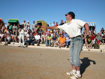 Ruth Seebach / Andreas Globig / Nicolaj Kirchhof (NRW) Deutscher Vizemeister Triplette sind Angelika Thelen / Thomas Thelen / Georgios Dimitriadis (NRW) Den 3. Platz teilen sich Mohamed-Kamel Bourouba / Malte Berger / Kim Rieger (NRW) Christian Hempel / Wolfram Krabiell / Matthias Schmitz (Berlin) Allen einen herzlichen Glückwunsch. Am 18. und 19.06.05 wurden in Lübeck-Travemünde die Deutsche Meisterschaft Triplette ausgetragen. Von den 26 NRW-Teams erreichten 16 Teams den 2. Poule 10 Teams das 1/16-Finale 10 Teams das 1/8-Finale 6 Teams das 1/4-Finale 3 Teams das 1/2-Finale 2 Teams das Finale |