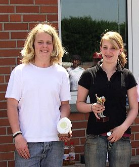 Die Sieger vom Schuss-Wettbewerb: 2. Platz Hannes Möllers, 1. Platz Laura Schardt