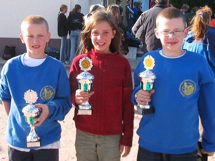 Es war wohltuend erfrischend mit anzusehen, mit welcher Begeisterung beide Minimes-Teams aufspielten, wie mannschaftlich geschlossen sie auftraten und gemeinsam alle emotionalen Höhen und Tiefen eines Spiels durchlebten. Ein besonderes Kompliment unseren Neulingen Marie, Laura und Nele, die sich erst kürzlich beim Generationenturnier gesucht und gefunden hatten und bei dieser ersten Deutschen Meisterschaft auf Anhieb mit einem klaren 13:4 Sieg gegen Hessen 3 den Fächerstadtpokal 2005 gewannen. NRW folgt somit dem erfreulichen Bundestrend, dass die Anzahl der Minimes-Teams kontinuierlich wächst. Ein herzliches Dankeschön gilt den Betreuern Ingrid Graumann, Erik Heinzelmann, Markus Vormann, Georg Zensen und Klaus und Birgit Maciuga.