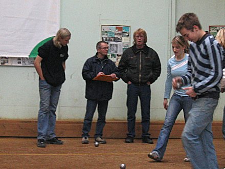 Um es vorwegzunehmen: Die DPV-Jugend-Kadersichtung am 3. und 4. Dezember in Berlin war für alle Beteiligten ein tolles Erlebnis! Uli Stratmann, DPV Vizepräsident Jugend, hatte die insgesamt 16 Jugendlichen aus den Landesverbänden Nord, Niedersachsen, Berlin und NRW eingeladen und unterzog sie an 2 Tagen einem anspruchsvollem Programm, das überwiegend aus Übungsspielen im Triplette mit Spielbeobachtung, Bewertungsplan und Spielanalyse bestand. Dazu kamen Taktikübungen sowie Lege- und Schießübungen, in denen die Jugendlichen ihr individuelles Können unter Beweis stellen mussten.