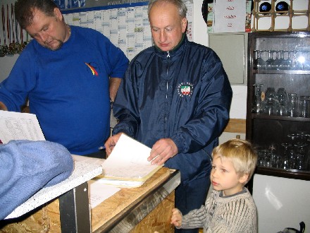 Schiedsrichterwart Max Spitzer und Karl Heither bei der Vorbereitung