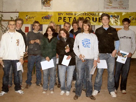 Im zweiten Anlauf spielte das Wetter mit: Die Hallen-Landesmeisterschaften konnten am Samstag, dem 17. Dezember 2005, in der Boulehalle des PCC Köln durchgeführt werden. Jakob Nisius, Vorsitzender des PCC Köln und bekannt für sein Engagement im Kinder- und Jugendbereich, hatte dies möglich gemacht und sorgte wie immer für den angenehmen Rahmen einer solchen Veranstaltung. Insgesamt 34 Jugendliche – ein neuer Rekord – kämpften in den drei Altersklassen um den Titel. Getreu dem Motto „Genießt ihr euer Spiel – Turnierleitung und Schiedsrichter kümmern sich um den Rest“ gefielen die Jugendlichen durch ihr spielerisches Können, durch ihre Unbekümmertheit, Spielfreude und ihr vorbildliches Verhalten untereinander. Max Spitzer, Schiedsrichterwart BPV NRW und jüngst zum DPV-Schiedsrichter befördert, bewies mit seinem bestimmten und besonnenen Auftreten immer wieder Fingerspitzengefühl und trug maßgeblich zum Erfolg dieser Meisterschaften bei. Eine wirklich beispielhafte Schiedsrichterleistung!