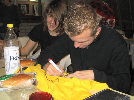 Ein T-Shirt als Gruß an Martin Barr (derzeit in Kanada) wird signiert