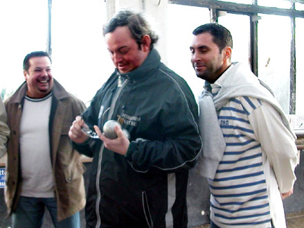 Bernard Bonnery übernahm freundlicherweise die Übersetzung. Hier im Gespräch mit dem 2-fachen Weltmeister David LeDantec über den legendären Carreau sur place als Pointer auf 13 m bei der WM in Essen.