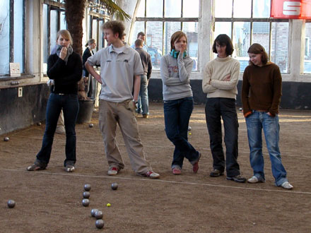 Die beiden Jugendmannschaften Laura Schardt, Hannes Möllers, Tobias Fischedick ( Jugend 1 ) und Simon Lindfeld, Steffen Letmathe, Max Borsche ( Jugend 2 ) zogen bei der Auslosung als Startplätze gleich A1 und B1 – wie sich am Ende des Turniers zeigte, mit entsprechendem Erfolg. Simon, Steffen und Max spielten, nach der Halbfinalbegegnung gegen das zweite Jugendteam, das Finale im B-Turnier gegen die Espoirs und gewannen nach spannender Partie mit 13 : 9! Die NRW-Jugend und die gerade in den Erwachsenenbereich gewechselten Espoirs zeigten wieder einmal, dass sie mit ihrer unbekümmerten Art, sichtbarer Freude am Boulespiel und sehr guter Technik „ganz oben“ mitspielen können. So wurde es für den Jugendwart des BPV NRW Karl-Heinz Heither ganz und gar nicht leicht, seine Auswahl für den Länderpokal in Hungen zu treffen.