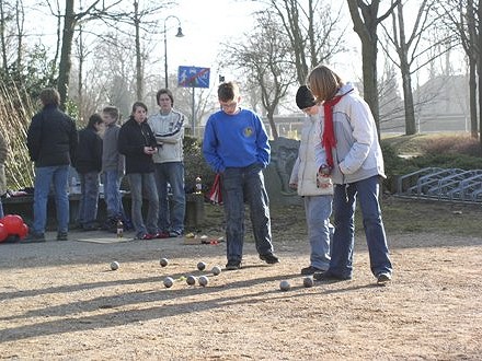 Nach der Begrüßung ging es pünktlich um 10.30 Uhr auf dem Bouleplatz an der Hauptschule Anröchte mit einem lustigen Kennenlernspiel und gleichzeitigem Aufwärmtraining los. Es folgten Begegnungen in der Disziplin Tête-à-tête auf Zeit, die Aufschluss über die Lege- und Schießqualitäten, über konzentriertes Spiel und taktische Überlegungen eines jeden einzelnen gaben. Beim Zirkeltraining über 5 Stationen, das paarweise durchspielt und protokolliert wurde, waren die Jugendlichen mit Ehrgeiz und Begeisterung bei der Sache. Das Mittagessen bei Heithers zu Hause hatte sich jeder redlich verdient und vor allem konnten sich alle aufwärmen – draußen war’s am Vormittag noch ziemlich kalt gewesen. Danach ließ sich die Sonne blicken und die Jugendlichen spielten auf verschiedensten Positionen in der Disziplin Triplette. Die Spiele wurden beobachtet und auf dem offiziellen DPV-Bewertungsbogen protokolliert und später analysiert. Parallel dazu lief der offizielle Tireur-Wettbewerb mit den 5 Bildern zu je 4 Schüssen auf den festgelegten Entfernungen 6-9 Meter. Nach und nach trafen die Eltern bzw. Vereinstrainer auf dem Boulodrome an der Hauptschule Anröchte wieder ein und so bot es sich an, im Abschlussspiel die Jugend gegen die Erwachsenen antreten zu lassen. Beim Schießen auf Luftballons gewannen schließlich denkbar knapp die Erwachsenen, doch die Gewinner des Tages waren eindeutig unsere Jugendlichen. Offensichtlich hat es allen viel Spaß und Freude bereitet, an der Kadersichtung teilzunehmen. Zwei von Ihnen gelang der Sprung in den B-Kader: