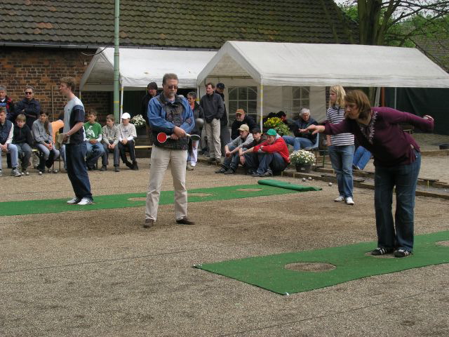 Am 14. Mai fanden in Ratingen Lintorf auf dem schönen und anspruchsvollen Boulegelände des TUS Lintorf die NRW Jugendmeisterschaften im Pétanque statt. Zu Beginn des Wettbewerbes ließ heftiger Regen keinen geregelten Spielbetrieb zu. Die Regenpause wurde dann kurzerhand für die Wahl der neuen Jugendsprecherin genutzt. Rebekka Große von den Pétanquefreunden Goch trat nach der Abstimmung die Nachfolge von Hannes Möllers an. In ihrer Eigenschaft als Jugendsprecherin gehört Rebekka damit dem NRW-Jugendausschuss an. Unmittelbar nach der Wahl klärte sich der Himmel auf und die Meisterschaften konnten beginnen.