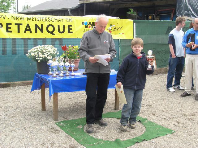 Neue Bestmarke im Tiereurwettbewerb Am 14. Mai fanden in Ratingen Lintorf auf dem schönen und anspruchsvollen Boulegelände des TUS Lintorf die NRW Jugendmeisterschaften im Pétanque statt. Zu Beginn des Wettbewerbes ließ heftiger Regen keinen geregelten Spielbetrieb zu. Die Regenpause wurde dann