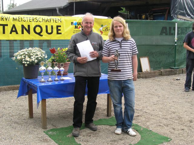 Neue Bestmarke im Tiereurwettbewerb Am 14. Mai fanden in Ratingen Lintorf auf dem schönen und anspruchsvollen Boulegelände des TUS Lintorf die NRW Jugendmeisterschaften im Pétanque statt. Zu Beginn des Wettbewerbes ließ heftiger Regen keinen geregelten Spielbetrieb zu. Die Regenpause wurde dann