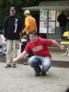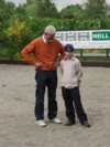 Hendrik Kruse gewinnt zum zweiten Mal. Wie immer stimmten die äußeren und organisatorischen Rahmenbedingungen beim Generationenturnier in Krefeld. Bei traumhaften Wetter konnte sich Hendrik Kruse mit seinem Partner Wolfgang Stracke (beide BC Krefeld) nach 5 Runden durchsetzen und sich den Turniersieg sichern. Der Sieg in Krefeld ist der zweite Sieg in der diesjährigen Turnierserie den Hendrik für sich verbuchen kann. Den zweiten Platz sicherte sich Christian Schneider mit seinem Partner Ludger Roloff (beide von Boule d´Aix-la-Chapelle). Dritte wurde die frisch gewählte Jugendsprecherin Rebekka (Bekki) Große (PF Goch) mit ihrem Partner Nico Stane (BC Krefeld). Auf den vierten Platz schafften es Viktor Graumann mit Partner Erik Heinzelmann (BPC Essen Stadtgarten) Ein Blick auf die Wertungstabelle, zeigt wie eng es in Krefeld zuging. Über die ersten vier Plätze mussten die Buchholzpunkte entscheiden, da die vier besten Mannschaften 4 von 5 Spielen gewonnen hatten. Der Erstplatzierte hatte lediglich da Spiel gegen die Drittplatzierte verloren. Diese wiederum konnte lediglich das Spiel gegen den Zweitplatzierten nicht für sich entscheiden und der Zweitplatzierte musste sich nur im Spiel gegen den späteren Sieger des Turniers geschlagen geben. Auch die anderen Mannschaften lieferten sich spannende Partien und kämpften ehrgeizig mit großem Einsatz um Punkte und Siege. Es war wieder einmal schön anzusehen, wie harmonisch "alt & jung" miteinander umgingen. Das schlechte Wetter am Vortag hatte leider einige Jugendliche davon abgehalten, die Reise nach Krefeld anzutreten. So blieb das Teilnehmerfeld doch sehr überschaubar, was aber die Stimmung auf dem herrlichen Boulegelände in Krefeld nicht trüben konnte. Ein besonderer Dank gilt dem ausrichtenden Verein, der wieder einmal für hervorragende Rahmenbedingungen gesorgt hatte. |
