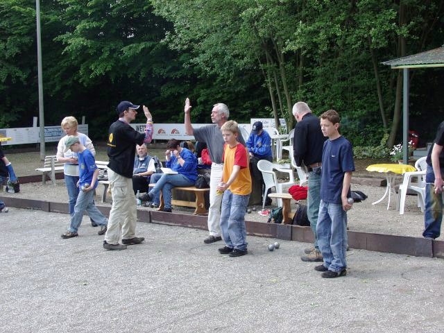 Hendrik Kruse gewinnt zum zweiten Mal. Wie immer stimmten die äußeren und organisatorischen Rahmenbedingungen beim Generationenturnier in Krefeld. Bei traumhaften Wetter konnte sich Hendrik Kruse mit seinem Partner Wolfgang Stracke (beide BC Krefeld) nach 5 Runden durchsetzen und sich den Turniersieg sichern. Der Sieg in Krefeld ist der zweite Sieg in der diesjährigen Turnierserie den Hendrik für sich verbuchen kann. Den zweiten Platz sicherte sich Christian Schneider mit seinem Partner Ludger Roloff (beide von Boule d´Aix-la-Chapelle). Dritte wurde die frisch gewählte Jugendsprecherin Rebekka (Bekki) Große (PF Goch) mit ihrem Partner Nico Stane (BC Krefeld). Auf den vierten Platz schafften es Viktor Graumann mit Partner Erik Heinzelmann (BPC Essen Stadtgarten) Ein Blick auf die Wertungstabelle, zeigt wie eng es in Krefeld zuging. Über die ersten vier Plätze mussten die Buchholzpunkte entscheiden, da die vier besten Mannschaften 4 von 5 Spielen gewonnen hatten. Der Erstplatzierte hatte lediglich da Spiel gegen die Drittplatzierte verloren. Diese wiederum konnte lediglich das Spiel gegen den Zweitplatzierten nicht für sich entscheiden und der Zweitplatzierte musste sich nur im Spiel gegen den späteren Sieger des Turniers geschlagen geben. Auch die anderen Mannschaften lieferten sich spannende Partien und kämpften ehrgeizig mit großem Einsatz um Punkte und Siege. Es war wieder einmal schön anzusehen, wie harmonisch "alt & jung" miteinander umgingen. Das schlechte Wetter am Vortag hatte leider einige Jugendliche davon abgehalten, die Reise nach Krefeld anzutreten. So blieb das Teilnehmerfeld doch sehr überschaubar, was aber die Stimmung auf dem herrlichen Boulegelände in Krefeld nicht trüben konnte. Ein besonderer Dank gilt dem ausrichtenden Verein, der wieder einmal für hervorragende Rahmenbedingungen gesorgt hatte. |