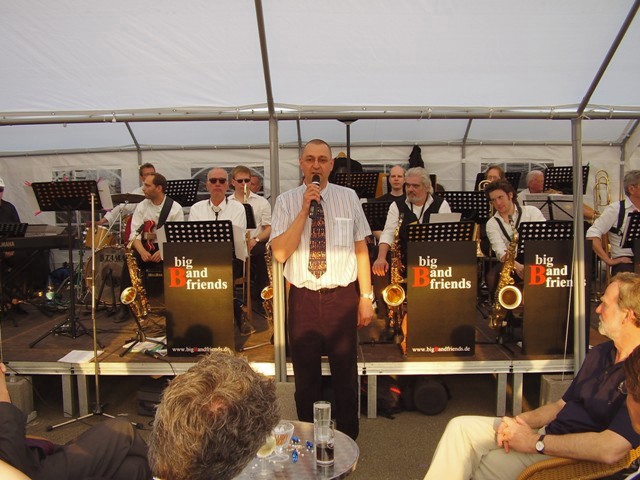 Nico Beucker eröffnete dann das geschmackvolle Buffet und die eigens für diesen Anlass engagierte 16 köpfige Bigband übernahm wieder die musikalische Untermalung des Abends, den sie schon beim Eintreffen der Gäste durch swingende Sounds eingeleitet hatte.