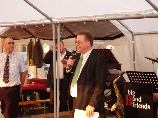 Nico Beucker eröffnete dann das geschmackvolle Buffet und die eigens für diesen Anlass engagierte 16 köpfige Bigband übernahm wieder die musikalische Untermalung des Abends, den sie schon beim Eintreffen der Gäste durch swingende Sounds eingeleitet hatte.