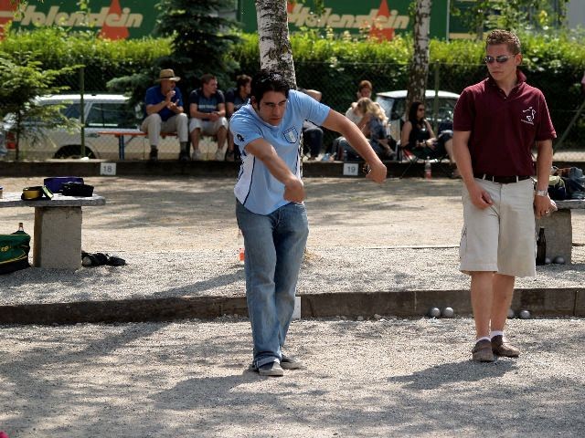 Abends treffen weitere Bouler auf dem Campingplatz ein. Wir schauen ein WM-Spiel auf der Großleinwand. Eine DM mit Kurcharakter.
