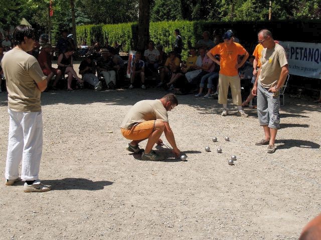 Abends treffen weitere Bouler auf dem Campingplatz ein. Wir schauen ein WM-Spiel auf der Großleinwand. Eine DM mit Kurcharakter.