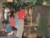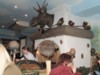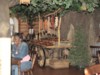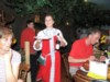Wenige Minuten später schon stehen wir, gemeinsam mit Sascha, im Eingangsbereich des bereits sehr gut gefüllten Restaurants. Der erste Eindruck vermittelt Wärme und Gemütlichkeit. Das Lokal ist durch sehr viel Holz geprägt. Mittendrin stehen zwei dicke Bäume. Ich nehme mir vor, zu fühlen ob die echt sind, vergesse es jedoch in der Aufregung. Alle Bediensteten sind mit Trachten bekleidet und es fällt sofort auf, dass es mindestens 10 bis 15 Trachten sein müssen, die hier wie die Ameisen kreuz und quer durch das Lokal laufen. An der Wand hängt ein Elchkopf. Riesig. So groß werden Elche? Und dann plötzlich deutsche Stimmen. Durch den Ruf meines eigenen Namens werde ich aus meinem Traum von Kosaken und Kassatschok herausgerissen. Ups, das sind ja Alex (Bauer) und Manfred (Kuhn) unsere süddeutschen Teilnehmer und an ihrem Tisch sitzen noch weitere deutsche Boulespieler aus Germering. Die Begrüßung ist groß. Wie lange seid ihr schon hier? Wo wohnt ihr? Und wie um alles in der Welt kommt ihr gerade auf dieses Restaurant?