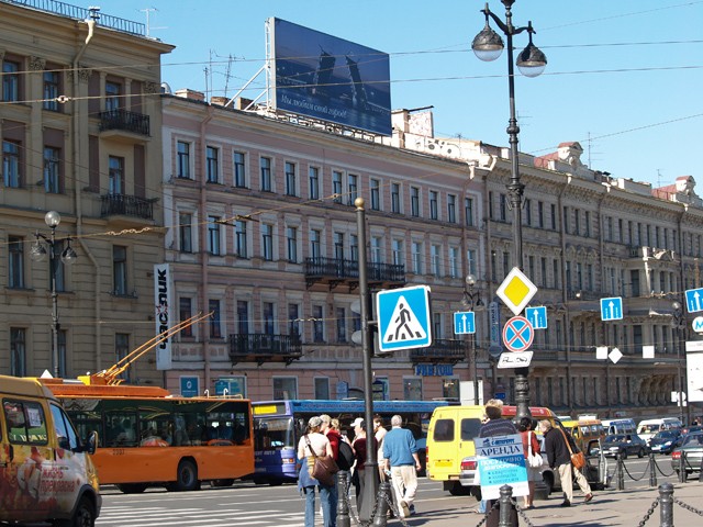 Evgeny schlägt vor, eines dieser halboffiziellen Taxis zu nehmen. Es gibt hier in St. Pete verschiedene Möglichkeiten sich fortzubewegen, wenn man nicht laufen möchte und der Nevsky ist verdammt lang. Man könnte mit der Straßenbahn fahren, wenn es auf dem Nevsky eine gäbe oder auch mit dem Bus. Das dauert aber lange bis einer kommt, denn die Busse fahren auf Strom und sind an die Oberleitung gebunden. Und bei dem Verkehr der hier herrscht, macht es sie nicht unbedingt mobil oder gar schnell.