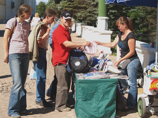 Organisationstalent Evgeny und Kartenkäufer im Hintergrund