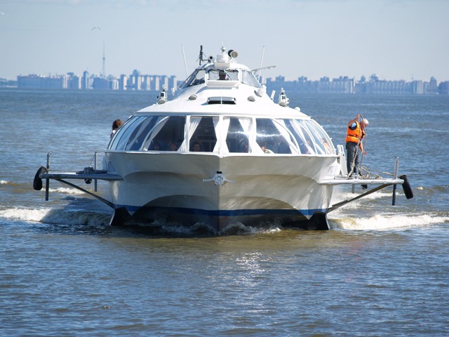 Wir legen ab. Das Schiff bewegt sich mit lautem Getöse rückwärts und dreht behäbig. Nun gibt der Kapitän Gas und langsam, ganz behutsam erheben wir uns aus dem Wasser. Aha, so funktioniert das. Also alles Raketas, die dort liegen! In regelmäßigen Abständen von wenigen Minuten kommen sie uns dann auch von St. Pete entgegen. Es muss sehr viele davon geben.