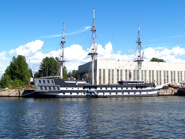 Nach ungefähr 20 Minuten haben wir den finnischen Meerbusen durchkreuzt und nähern uns der Stadt. Vorbei am „Kirow-Stadion“ hinein in die „Malaja Newa“, einem der dort in die Ostsee mündenden Newa Arme. Wir passieren etliche interessante Gebäude und Hafenanlagen, die „Schwefel-Insel“ und auch das „Petrowski-Stadion“, bevor wir schräg gegenüber der „Peter und Pauls Festung“, einer Zitadelle, direkt vor der „Eremitage“ anlegen.