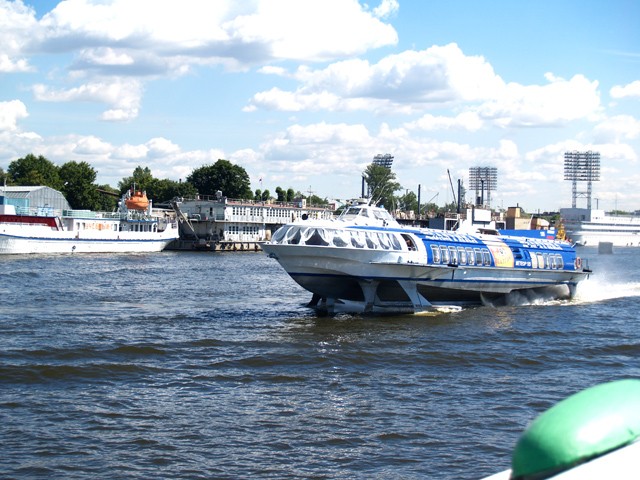 Wir legen ab. Das Schiff bewegt sich mit lautem Getöse rückwärts und dreht behäbig. Nun gibt der Kapitän Gas und langsam, ganz behutsam erheben wir uns aus dem Wasser. Aha, so funktioniert das. Also alles Raketas, die dort liegen! In regelmäßigen Abständen von wenigen Minuten kommen sie uns dann auch von St. Pete entgegen. Es muss sehr viele davon geben.
