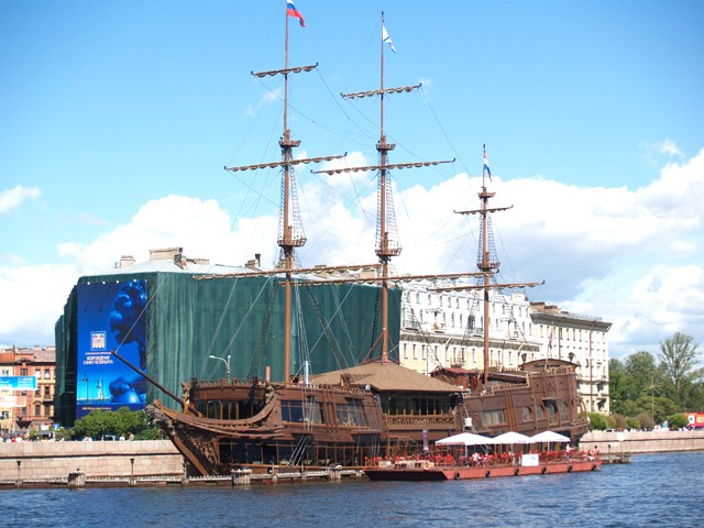 Nach ungefähr 20 Minuten haben wir den finnischen Meerbusen durchkreuzt und nähern uns der Stadt. Vorbei am „Kirow-Stadion“ hinein in die „Malaja Newa“, einem der dort in die Ostsee mündenden Newa Arme. Wir passieren etliche interessante Gebäude und Hafenanlagen, die „Schwefel-Insel“ und auch das „Petrowski-Stadion“, bevor wir schräg gegenüber der „Peter und Pauls Festung“, einer Zitadelle, direkt vor der „Eremitage“ anlegen.