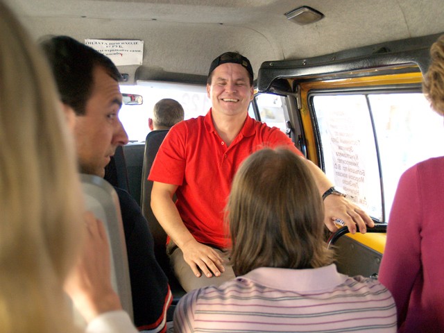 Den nächstbesten Bus, es gibt hunderte davon, hält Evgeny an. Wir steigen ein und Evgeny gibt dem Fahrer unser Ziel bekannt. Den Fahrpreis drückt man einem Mitreisenden in die Hand, der es den anderen bis zum Chauffeur weiterreicht. Kommt alles an, hundert pro!
