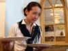 Wir waren nur wenige Meter vom Resto entfernt! Zumindest hatte mir dieser kleine Ausflug die Möglichkeit geboten einige schöne Fotos zu schießen, die Speicherkarte war ja wieder leer. Und ich wusste nun wo sich der Markt befindet. Da muss ich nämlich auch in jeder Stadt hin! Nun sitzen wir gerade im Schatten der "Wladimirskij-Kathedrale" als Anke und Jürgen ebenfalls das Lokal betreten. Auch in diesem Lokal finden wir wieder typisch russische Attribute und traditionell bekleidete Bedienung. Das Lokal besteht aus zwei Räumen, dem Gastraum und einem Nebenraum. Den Nebenraum nehmen wir ebenso vollständig in Beschlag wie diese nette Bedienung, die einen hinterasiatischen, etwas unterwürfigen, dabei aber außerordentlich lieben und freundlichen Eindruck macht. Sie wird Bernards Lieblingsbedienung von der er auch in Zukunft noch schwärmen wird. Natürlich habe ich von ihr ein Foto.
