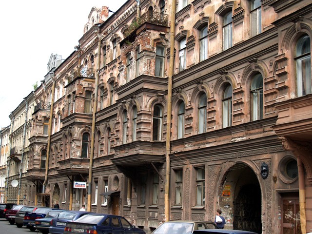 Nach den angekündigten 15 Minuten, wahrscheinlich war es sogar noch kürzer, laufen wir unter Peters Führung und netter Unterhaltung querfeldein zu dem vermeintlichen Ort des Restaurants. Auf dem Weg dorthin durchstreifen wir Hinterhöfe in denen ich mich immer wieder hinreißen lasse zu knipsen. Ich möchte an dieser Stelle auch nicht verschweigen, dass unser Guide es schaffte mit uns eine kleine Stadtführung zu unternehmen weil wir nämlich am Restaurant unserer Wahl tatsächlich vorbei latschten. Aber es gibt ja Handy, das sich in Russland übrigens sehr großer Beliebtheit erfreut. 90% aller Passanten telefonieren gerade, bei den übrigen 10% ist vermutlich nur der Akku leer.