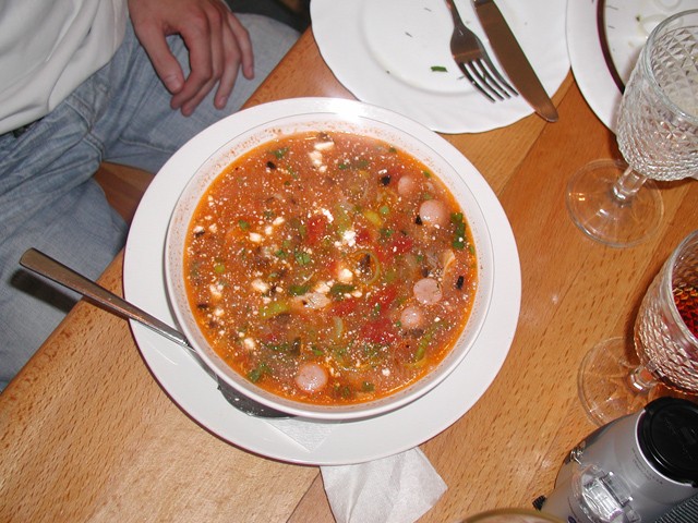 Natürlich wird alles fotografiert, von der Kellnerin bis hin zum einzelnen Mahl. Die Aufmachung dieses Lokales ist weniger traditionell als die des Resto's gestern Abend. Die Güte der Speisen steht jedoch der, der anderen, in nichts nach. Es schmeckt ausgezeichnet und ist wieder einmal viel zu viel.