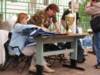 Die Soldaten beginnen den Laderaum ihres LKW's zu entladen. Tische und Bänke, Kühlschränke und Wasserspender. Alles mögliche kommt da raus und wird von den jungen Kerlen an Ort und Stelle getragen. Unsere Freunde helfen dabei mit.