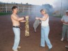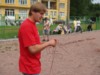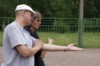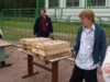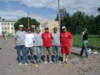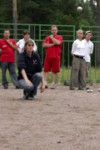 In Runde Eins traf Kiss (= Regensburg) auf Kaluga und siegte klar mit 13:4. Buddy und Europa lieferten sich einen mehr als dreieinhalbstündigen Kampf (= längstes Pétanquespiel, das je in Russland gemessen wurde), bevor 'Bertis Buben und Mädel' (bzw. Bernard und Bianca) (= Europa-Team) mit 13:11 knapp die Oberhand behielten. Unsere Regensburger, deren erstes Spiel so schnell gewonnen war, dass man 3 Stunden in der Mittagshitze auf den nächsten Einsatz warten musste, versagten danach, einen wahren Erschöpfungszustand auslebend, gegen ein engagiertes und wirklich gut aufspielendes Moskauer Buddy-Team mit 3:13. Alle Hoffnungen, den Titel vielleicht verteidigen zu können, waren geschwunden, zumal Team Europa auch sein zweites Spiel (gegen Kaluga) nach zähem Ringen 13:10 gewann.