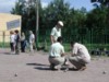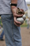 Wir kennen niemanden der hier anwesenden Personen. Die meisten stehen bereits auf dem Platz und werfen ihre Kugeln. Hier ist aber nicht viel zu sehen. Kein Podium, keine Verpflegung, keine Einschreibung, gar nichts !! An einem der herumstehenden Autos erkenne ich zumindest unseren Sascha und auch Arkadi. Scheint ja dann doch wohl richtig zu sein.