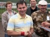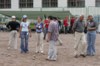 Team Buddy - unser Moskau-Casablanca-Verbund bekam es nun mit Kaluga zu tun, dem traditionellen Angstgegner aller Moskauer Pétanquespieler. Und wieder ging der Provinzverein um Präsi Aleksandr Okunev mit 9:1 in Front, bevor die Ossokin-Brüder und der Konsulatsangehörige Anoar aus Marokko doch noch und mit letzter Kraft 13:12 gewannen. Zeitgleich kam es erstmals zu einer deutsch-deutschen Begegnung, als Europa (Goch & Redon/F) auf Kiss (Regensburg) traf. Den Bayern hing scheinbar noch die Niederlage gegen ihre Freunde aus Moskau nach, jedenfalls lag das deutsch-holländisch-französische Trio rasch mit 7:0 und 10:2 in Front. Fast unmerklich verschob sich danach aber Spielanteil und taktisches Geschick zugunsten der Ostbayern, die ihr schwächeres Legen durch aggressiveres Spiel zu kompensieren suchten (manche Stimmen behaupten auch, dass zuletzt die von Piotr angelieferten kühlen Biere den Umschwung brachten ;-)