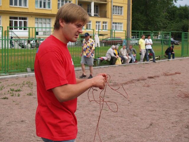 In Runde Eins traf Kiss (= Regensburg) auf Kaluga und siegte klar mit 13:4. Buddy und Europa lieferten sich einen mehr als dreieinhalbstündigen Kampf (= längstes Pétanquespiel, das je in Russland gemessen wurde), bevor 'Bertis Buben und Mädel' (bzw. Bernard und Bianca) (= Europa-Team) mit 13:11 knapp die Oberhand behielten. Unsere Regensburger, deren erstes Spiel so schnell gewonnen war, dass man 3 Stunden in der Mittagshitze auf den nächsten Einsatz warten musste, versagten danach, einen wahren Erschöpfungszustand auslebend, gegen ein engagiertes und wirklich gut aufspielendes Moskauer Buddy-Team mit 3:13. Alle Hoffnungen, den Titel vielleicht verteidigen zu können, waren geschwunden, zumal Team Europa auch sein zweites Spiel (gegen Kaluga) nach zähem Ringen 13:10 gewann.