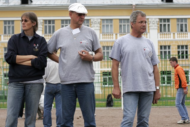 Peterhof, 22./23.7.2006: Wie im letzten Jahr nahmen auch in 2006 wieder 28 Triplette-Teams an den Offenen Russischen Meisterschaften um den Bürgermeisterpokal der Stadt Peterhof teil. Teams und einzelne Spieler aus folgenden Nationen kamen: Russland, Ukraine, Weißrussland, Moldawien, Belgien, Holland, Frankreich, Deutschland und Marokko. Die russischen Teams, die naturgemäß in der Mehrzahl waren, rekrutierten sich aus Städteteams wie z.B. Kaluga, Moskau, St. Petersburg, Peterhof, Pavlovsk etc.
