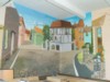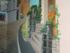 Auf der anderen Seite des Raumes befindet sich der Ausgang zum Hof. Die Gebäude ringsum sehen alt und unbenutzt aus. Rechts von uns befindet sich ein Teich mit einem kleinen Wehr. Wir überqueren eine kleine Brücke und laufen ca. 400 m einen Abhang hinab. Hinter den hohen wildwachsenden Bäumen verbergen sich weitere Gebäude. Am Fuße des Hügels angelangt betreten wir über eine steinerne Treppe eines der Gebäude, die vermutlich tatsächlich alte Fabrikhallen gewesen sind. Es ist dunkel in diesem Gang. Grau in grau. Die Tür links scheint verbarrikadiert. Warum? Lesen können wir hier nichts. Doch a la wir weiterlaufen, sehen wir an den Wänden Wandmalereien. So müssen sich die Entdecker der alten Höhlen in Südfrankreich gefühlt haben. Sieh mal, der hat Boulekugeln in der Hand! Unser weiterer Weg, mal links, mal rechts aber ständig nach oben ist mit zunehmend mehr Malereien verziert. Wir sind also da! In der Boulehalle. Oben! In der mindestens zweiten Etage.